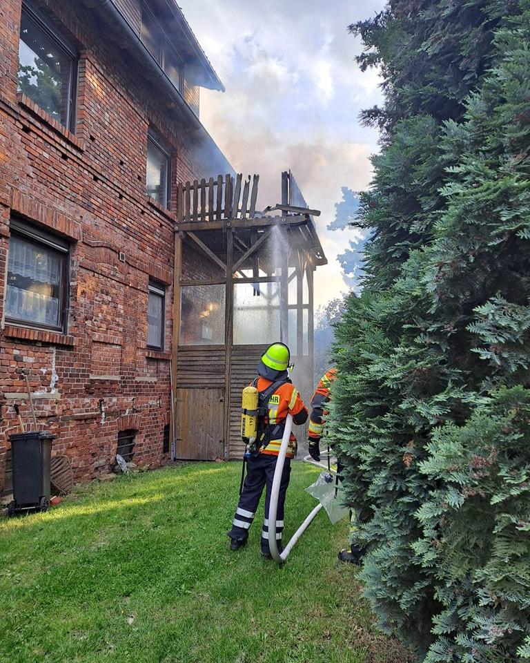 Vor Ort brannte es auf einen Holzbalkon, das Feuer drohte auf den Dachstuhl überzugreifen.