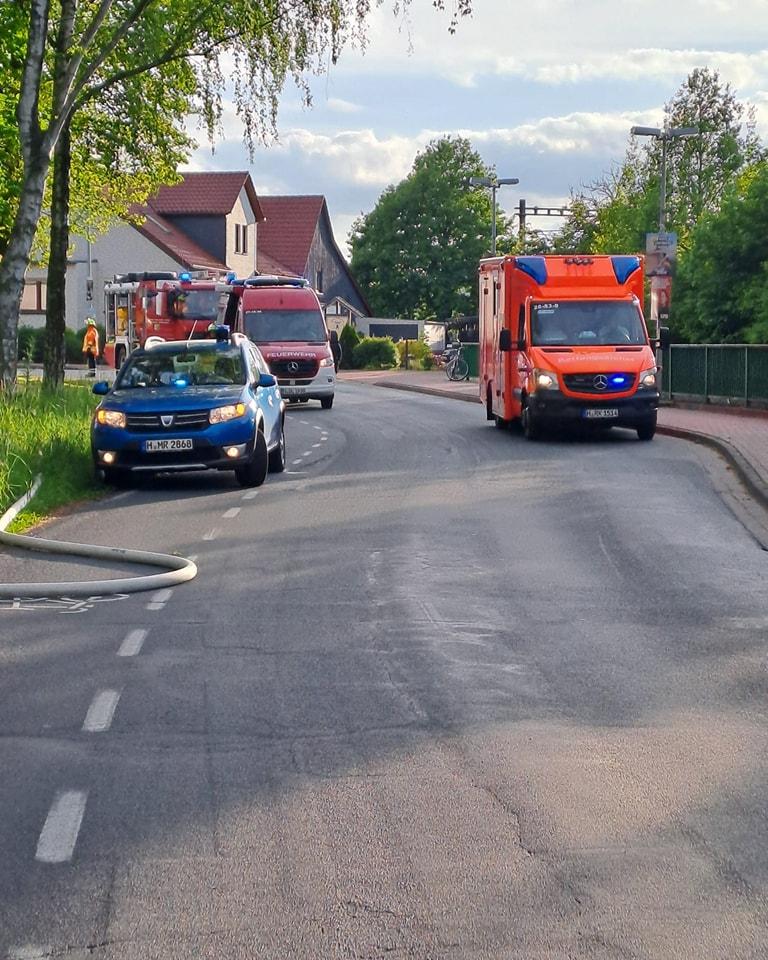 Im Einsatz die Feuerwehr Dollbergen mit 3 Fahrzeugen, der Gemeindebrandmeister, die Polizei und der Rettungsdienst.