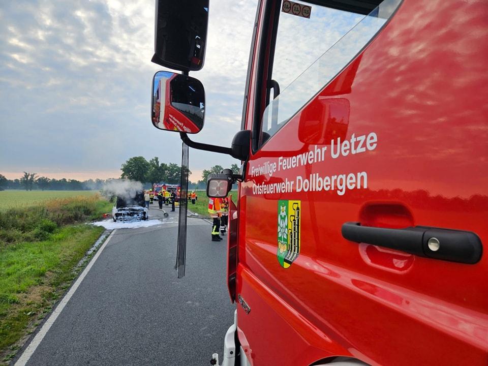 Zu einem PKW Brand wurden wir auf die K145 Dedenhausen – Wehnsen alarmiert.