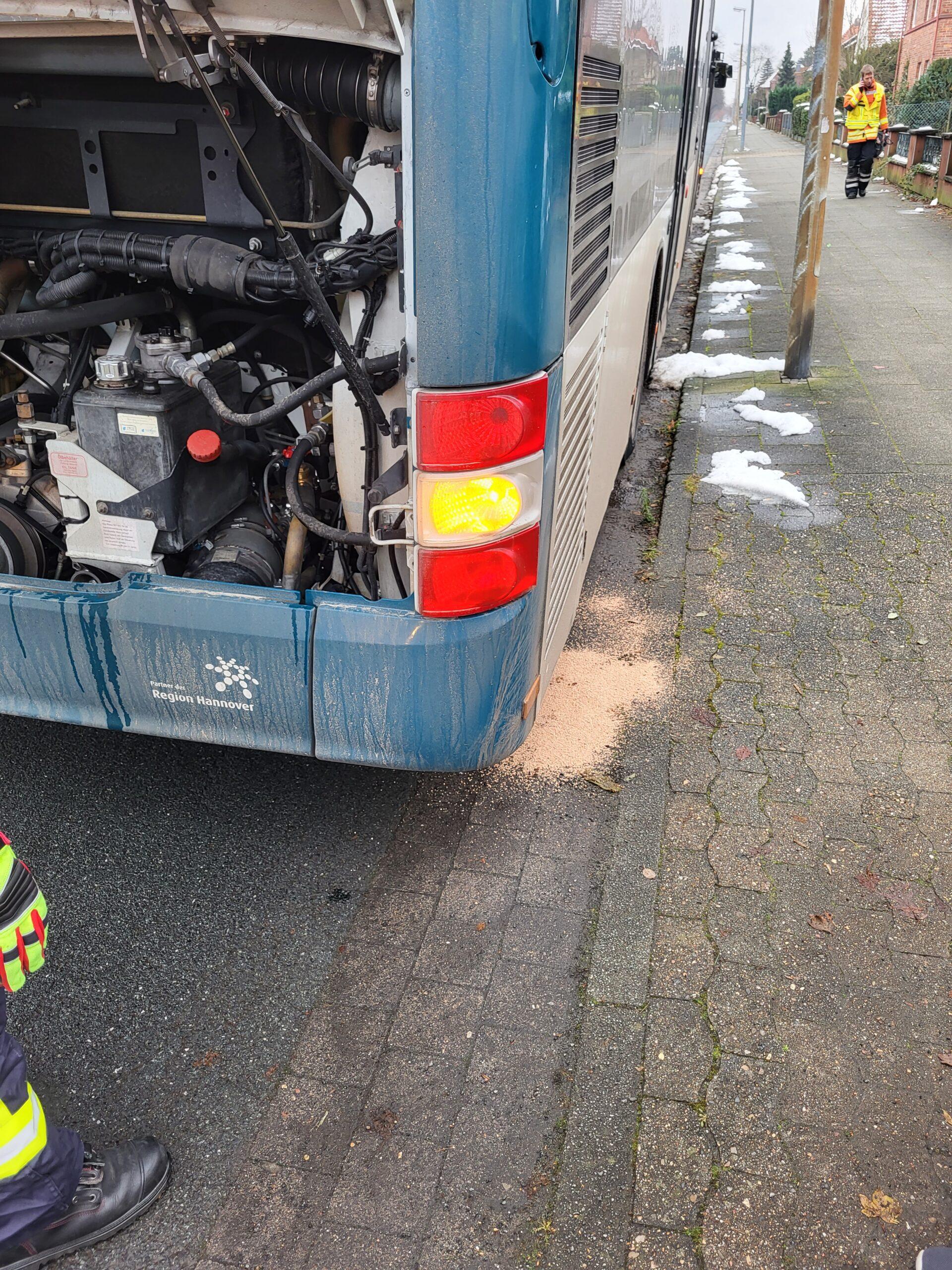 Auf der Rückfahrt von der BMA, viel den Einsatzkräften ein stark rauchender Bus der RegioBUS auf. Dieser hatte den Rauch ebenfalls bemerkt und hielt auf der Bahnhofstrasse in Dollbergen an. Nach Kontrolle mit der Wärmebildkamera wurde die Motorklappe geöffnet und festgestellt, das anscheinend ein Kühlwasserbehälter seine Flüssigkeit über die heißen Motorteilen verteilte und diese dort verdampften. Wir streuten die heruntertropfende Flüssigkeit ab und rückten dann wieder ein.
